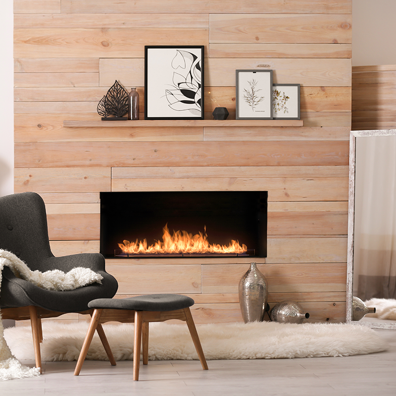 Det eneste du må ta stilling til, er hvilken lengde du ønsker på bålet og hvor stor tanken skal være. Peisen bygger du inn i gips eller sponplater. Enklere er det ikke!