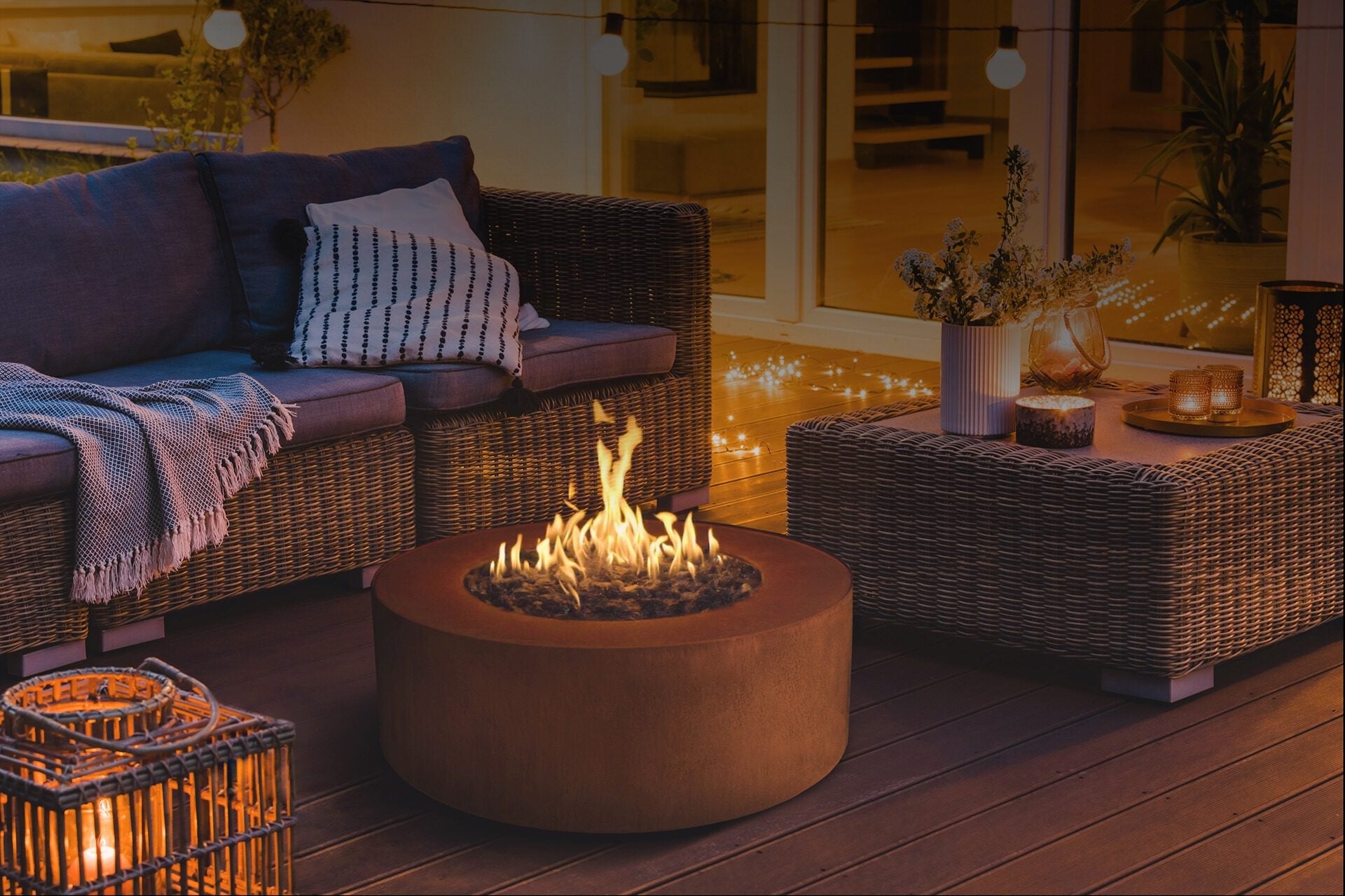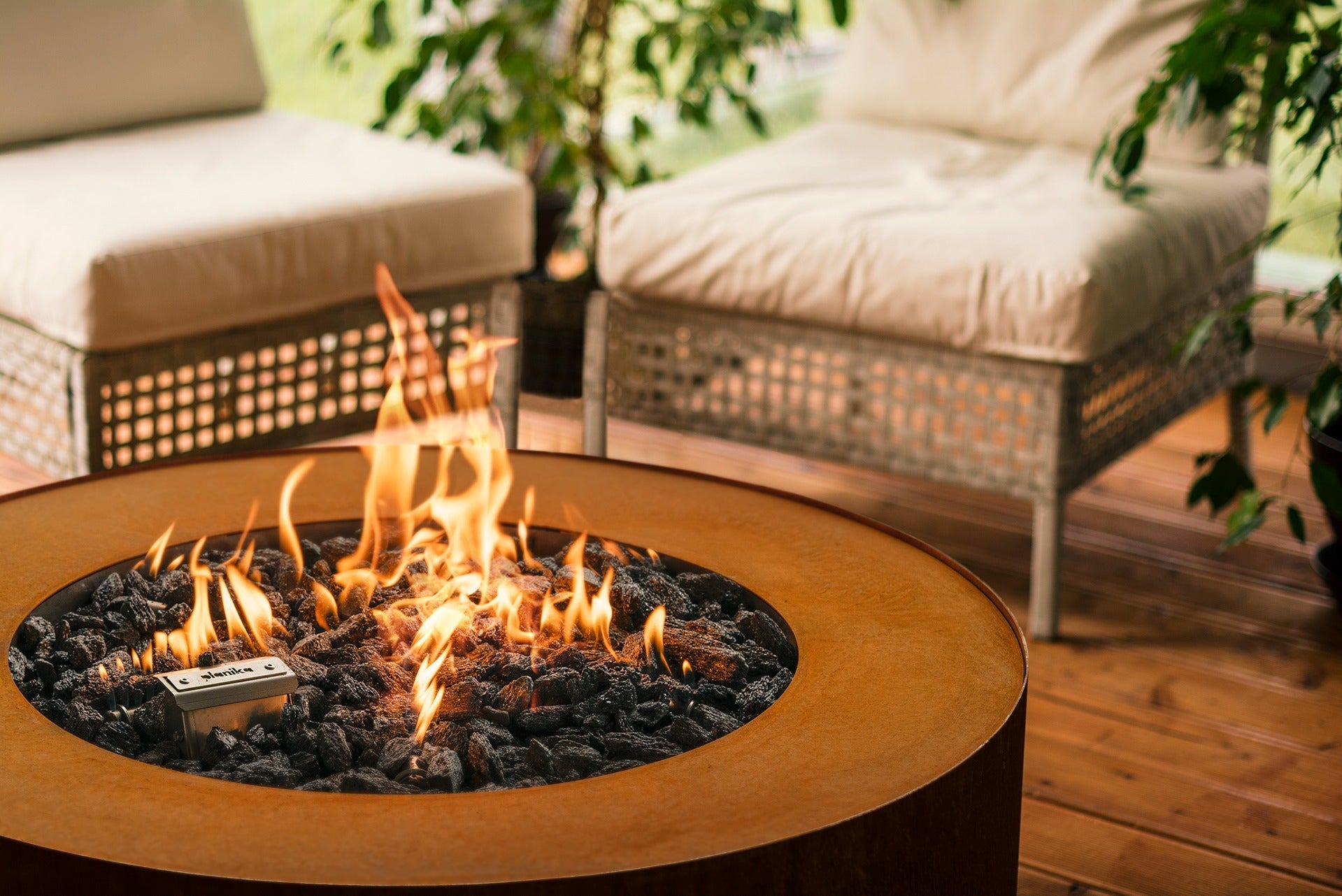 Planika Galio Star Corten – Rund utendørs gasspeis i cortenstål