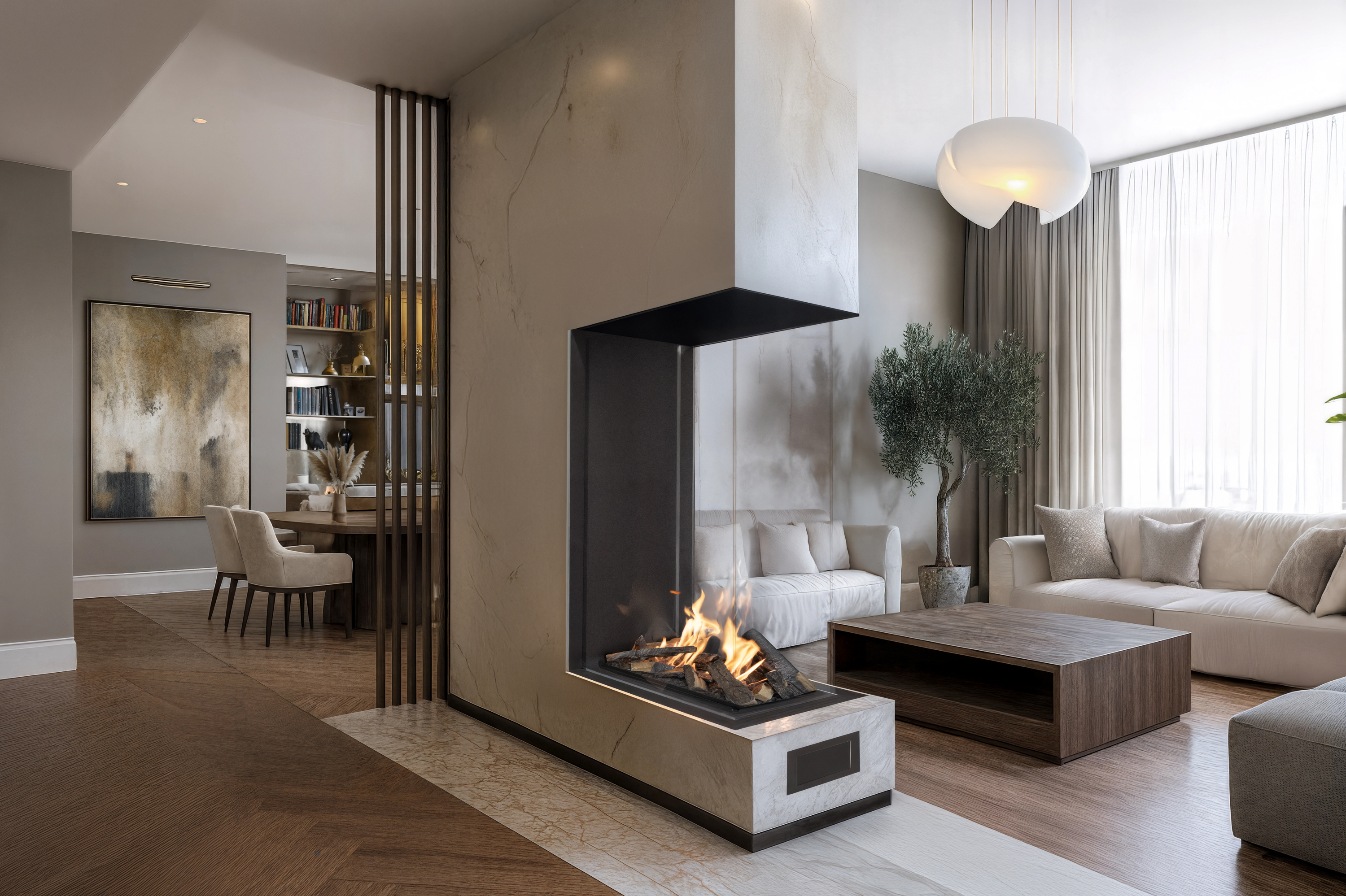 Vitro kan leveres i tre varianter – Romdeler, Høyre Venstre, og Hjørne Høyre – slik at flammen kan integreres i rommet som romdeler eller hjørneløsning. Peisen er fullt elektronisk styrt og kan fjernbetjenes, også via smarthus-systemer.